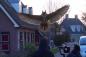 なんという奇跡!ワシミミズクを観察していた動物愛好家の頭の上に着地して、ダンスを踊るワシミミズク