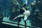 人なつこいサメをムツゴロウ撫でするダイバーのいる風景