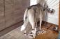 お前がご飯を食べるのなら、私がお前を食おう。ハスキー犬の足をハムハムする子猫