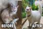 毛のほとんどを失いボロボロの状態だった野良猫が美しい白猫に成長するまでの物語