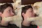 愛にできることはまだあるよ。飼い主の顔を引き寄せ鼻と鼻でキスする猫