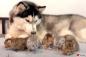 犬と子猫の優しい時間。ハスキーの優しいまなざしに見守られてのびのび遊ぶ子猫たち