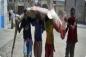 ソマリアで獲れる巨大魚とそれを頭にのせて運ぶ人々の画像