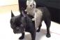 フレンチブルドッグに乗るアフリカオオコノハズク、落とされてご立腹中