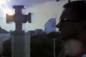 テレビインタビュー中にライトニングボルトーッッ!雷が2発連発で落ちる。十字架→マイクの順