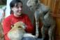 育児放棄された白モフのホワイトライオンの赤ちゃんのお父さん代わりはポインターミックス犬