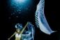 優雅な水中ファンタジー、マンタと女性ダンサーが水中で踊りの競演