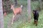 フェンス越しに芽生えた友情、ロットワイラー犬と鹿のおいかけっこ