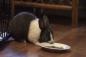 何かが気に入らなかったらしい。皿をひっくり返すウサギ