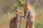 「ぼくたち、悪い奴じゃないよ。」3匹の子ギツネこんこん草原の中。春キツネの子どもたちのゆるふんわり