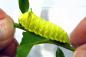 押すと「きゅうきゅう」鳴くよ。オモチャみたいなウスタビガの幼虫