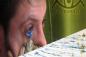 鼻から牛乳ならぬ、鼻から絵の具。鼻から吸った絵の具を目から噴射させて絵を描く涙目アーティスト