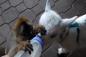 犬の包容力は天井しらず。突如犬に二足立ちで抱き付く猫に対し、犬「よしよし」