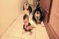 赤ちゃんの最強のガードマン。匍匐前進して赤ちゃんを護衛する2匹の犬