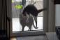 ドアの前に来た猫にひとりパフォーマンスを見せつける猫