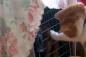 「待ってて!いま出してあげるからね。」犬をキャリーから必死に出そうとする猫