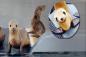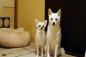大きいと小さいがひっついた。シベリアンハスキーと一体化したミーアキャット