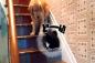 そこに座ってらっしゃるから・・・猫が怖くて階段を降りられない犬に一家総出で救出大作戦