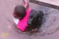 溺れてる!助けなきゃ。男の子を必死に引き上げようとする犬