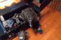 ブロックと運命を共にした猫、箱からブロックを死守する。