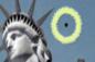 ニューヨーク、自由の女神の上を通過していった黒い円形のUFO