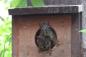 フクロウの巣箱を占拠したリスの一家。出たり入ったり大忙し