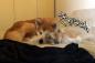 秋田犬が大好きなウサギがピョンってきてぴったり寄り添いお休みなさい