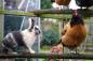 そのうち穴掘って虫食べちゃうんじゃないかとヒヤヒヤ。自分を完全にニワトリだと勘違いしているウサギ