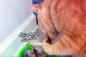 魚さんが大変!水をかけなきゃ!瀕死の魚に鼻で必死に水をかける犬のいる風景