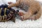 肉球と食べ物を軽く勘違いしたカメ、猫の肉球にパクつく