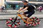 一応走れるっぽい。ロードレースに出場したタイヤがランニングシューズになった自転車(英ロンドン)