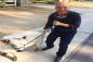 スケートボードをしている男性にすがるような目で近づいてきた子猫、足首をギュっと掴んで離れない。そして一年後・・・