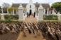 通勤ラッシュアフラック。職場に向かう大量のアヒルたちの出勤風景