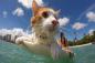 片目サーファーキャットのクリさん、今日もホノルルの海でビッグウェーブに乗る