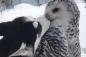 シロフクロウとシベリアン・ハスキー、雪景色の中でいちゃこらがとまらない