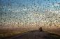 竜巻のように道路を埋め尽くす、ロシアのバッタ大量発生