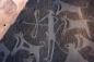 狩りをする人とリードにつながれた犬の姿。人類が描いた最古の犬の絵と思われる8000年以上前の岩面彫刻(サウジアラビア)
