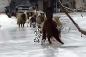 アルパカ先輩率いる羊・ヤギ軍、完全に凍った地面の上をつるんつるんと歩く!転ぶ!(カナダ)