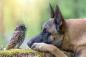 天翔ける翼と地を駆ける足。犬とフクロウの間に流れるやさしい時間をご覧ください