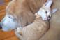 種は違っても親子同然。ゴールデン・レトリバーと茶トラ子猫のきゃっきゃうふふ