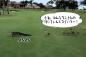 リーダーはワニ。ゴルフ場を横断するワニの後についていくガチョウの家族(アメリカ)