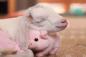 ヤギの子がギュっとブタのぬいぐるみを抱きしめて眠る姿がかわいい
