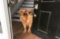 子猫をいたわるジャーマンシェパード。まだ階段をうまく登れない子猫をやさしく口でくわえて運ぶ