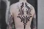 未知との遭遇に備えたメッセージ?黒一色をベースに彫り込まれた、ジオメトリックなSF風近未来的タトゥ