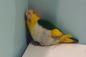 「ココが気になるぅ~気になるの~」すみっこから離れがたいシロハラインコ