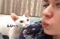 猫とのキッスを自撮りにおさめたかった女性。唇を突き出して猫を待つ。しめしめ近づいてきた...で、こうなった。