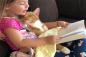今日はどんなお話が聞きたい?ヒザの上で眠る猫に読み聞かせをする少女
