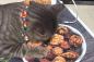「ちっとも味がしにゃいんだけど」絵に描いた餅ならぬ、印刷された皿のクッキーを食べようとする猫