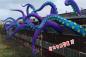 巨大タコ襲来か?廃墟風ビルから生える巨大なタコの触手。斬新なインフレータブルアート