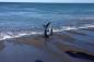 「さあ行きな、もうこんなところに近づくなよ!」と、砂浜に打ち上げられたサメを助ける男性